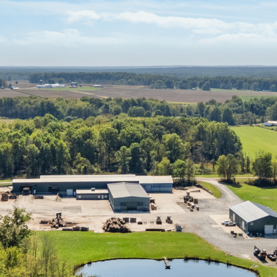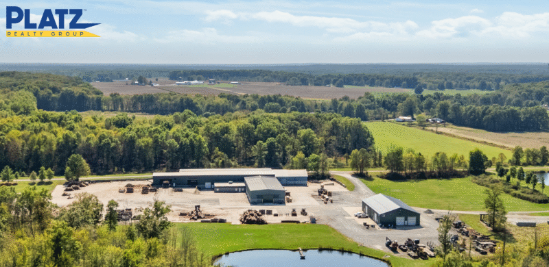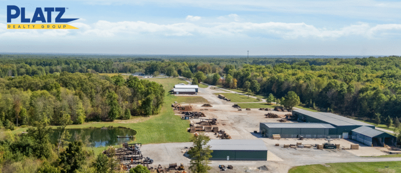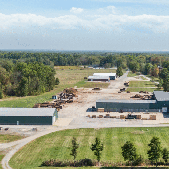 Current Lumber Mill with modern Steel 29,000 SF building with crane, plus newer 7,500 SF high bay motor/ truck repair building surrounding a 4 acre concrete pad.