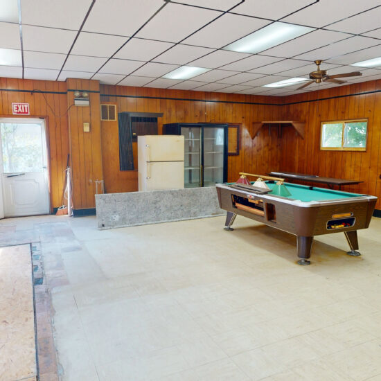 Recently renovated with drop down ceiling, electrical, and refurbished roof Open floor plan Basement offers walkout to backyard with Bocce Court Sits on 3 city lots, totaling . 5 acres