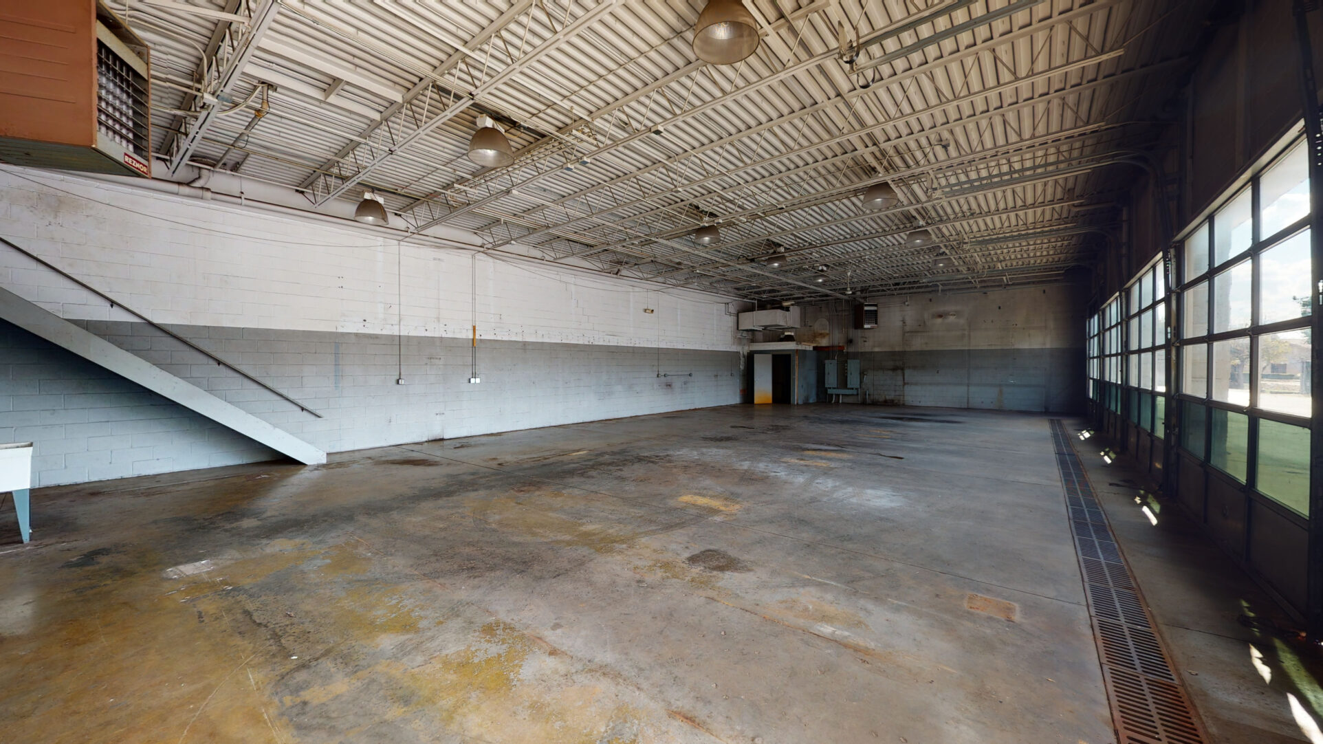 This retail /office suite has a large waiting area, employee break room, ample office space and features five drive-in doors.
